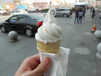 マクドナルドの3元のソフトクリームがおいしゅうございます。
