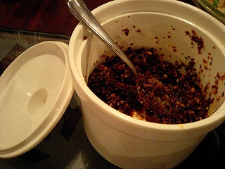 ↑タンタン麺に入れる辣醤。奥さんが「これ、売ってくれないかな」と絶賛していました。
