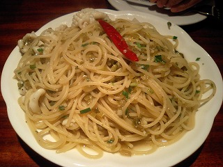 高菜とイカのペペロンチーノ。