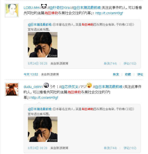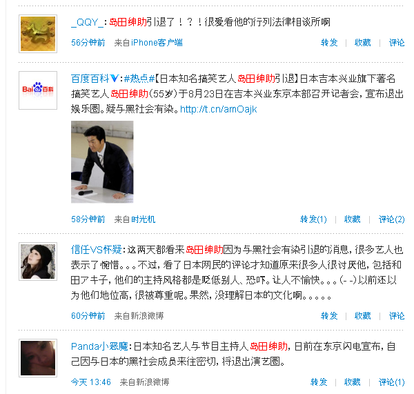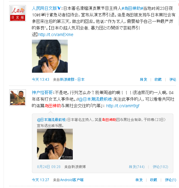 といっても中国で島田紳助は(そんなに)有名ではありません。