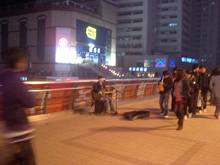 徐家匯の歩道橋の上にストリートミュージシャンがいました。