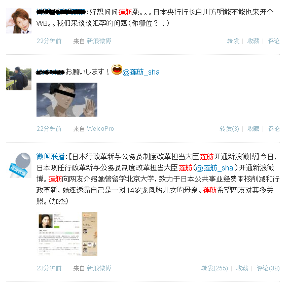 そんな新浪微博のVIPアカウントに民主党の蓮舫氏の名前がありました。