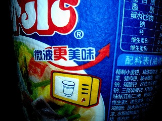 中国のカップヌードルは電子レンジで作れるので便利。