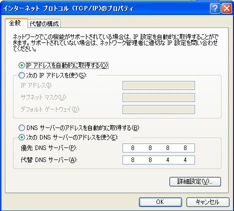 その方法は少し前に話題になった「魔法の数字 8.8.8.8 8.8.4.4」というもの。