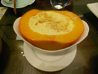 かぼちゃの中に卵を蒸したもの。