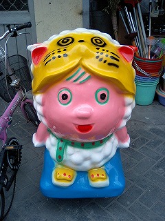 中国の子供に大人気の「喜羊羊」のキャラクターだと思うのですが、顔がパンパンです。