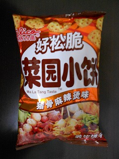 ↑グリコの「菜園小餅」の「猪骨麻辣烫(豚骨マーラータン)味」