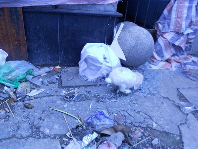 粉々に割れたガラスやビニールのゴミの中で生活しているのでしょうか。