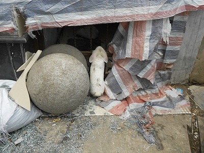 取り壊しが決まって立退きも済んでいるボロボロの場所にウサギがいました。