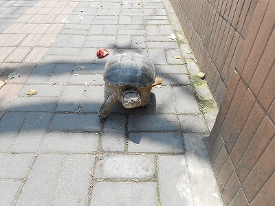 大きなカメが散歩していました。