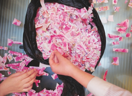 【中国】嫁のために貯めた金・63万円分が嫁によって切り裂かれる / 夫・銀行「1200円分しか復元できず」