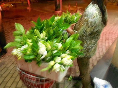 街の中でジャスミンの移動屋台を見かけるようになりました。