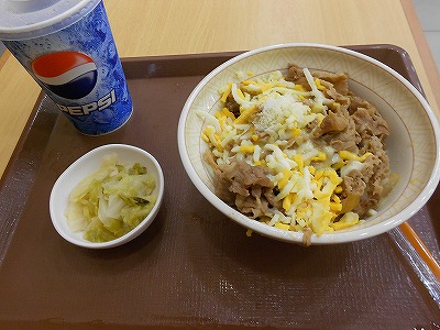 夜はチーズ牛丼。