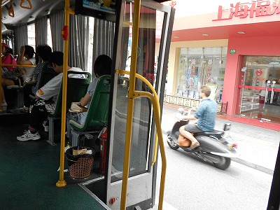 仕方がないのでできるだけ体を左に寄せていたら、後ろのおばさんが上海語で運転手に言ってくれました。