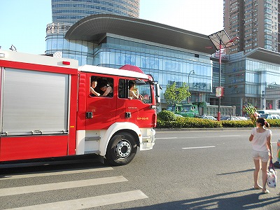↑シャッターチャンスを逃してしまいましたが、消防車に乗っていたのはランニング(タンクトップ)姿の男10人ぐらい。