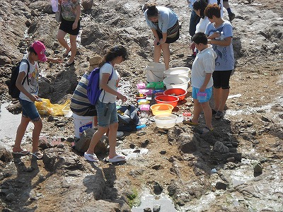 磯遊びをしている人がたくさん。
