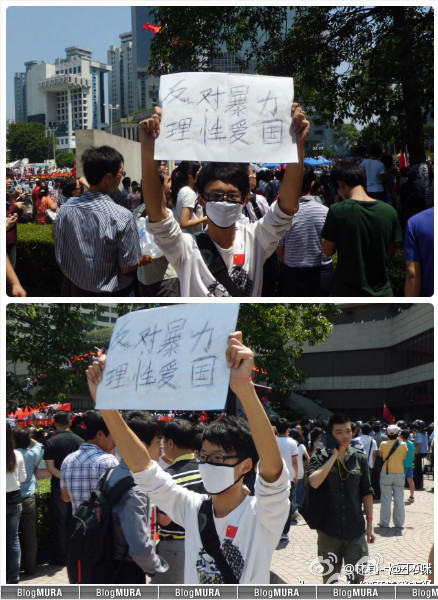「私は上海人です。反日デモに参加しない、破壊活動を行わない」。
