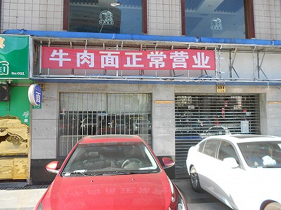 「牛肉面正常営業」という垂れ幕を掲げていたこのお店。