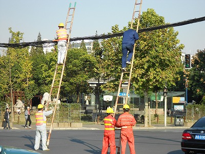 たぶん…ハシゴがアースの役割をしてくれるので、この方たちは感電しないと思われます。