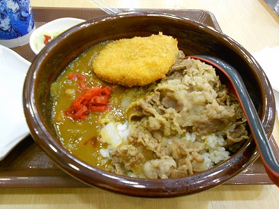 牛肉カレーにコロッケをトッピングというぜいたく。