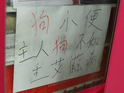 ↑「狗小便 主人狗不如 生艾滋病」と書かれています。