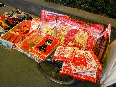 露店では春節グッズを販売中。