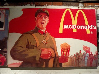 マクドナルドとケンタッキーのプロパガンダのようなアート作品。