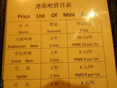 通常の値段に比べたら2倍ぐらいしていますが、中国の四つ星以上のホテルに泊まった方なら信じられない価格設定でしょう。