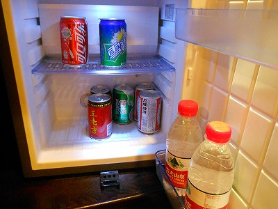 ↑ホテルの冷蔵庫の中身が、