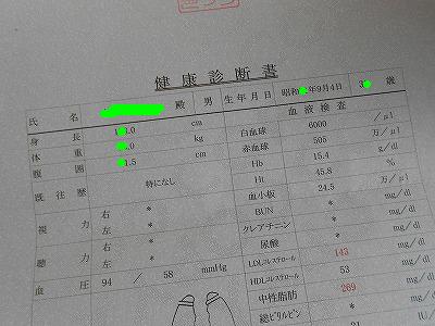 先月帰った際に受けた健康診断で、