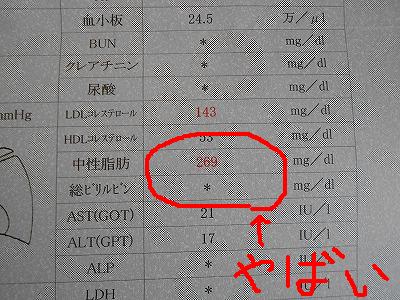 LDLコレステロールの値が143、中性脂肪の値が269を記録しました。