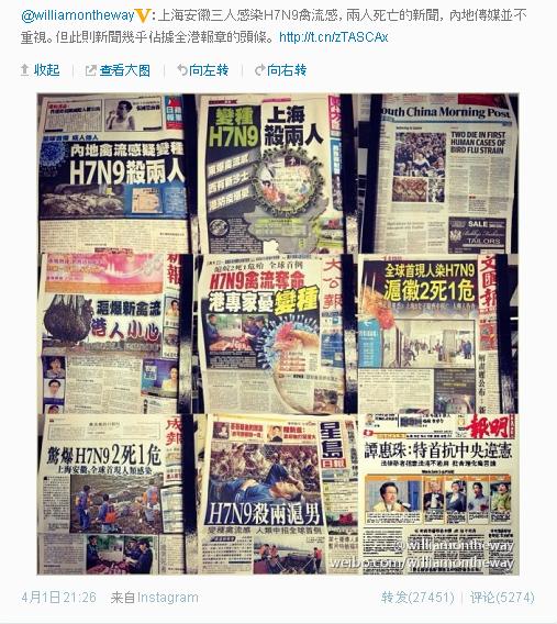 ↑香港では大々的に取り上げていますが、内地(中国大陸)では重要視されていないとの微博のつぶやき。