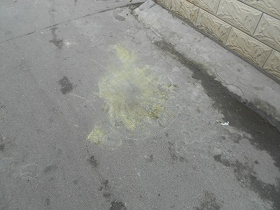 ↑白いチョークで書かれた円(というか古墳のような形)の中で何かを燃やした跡。
