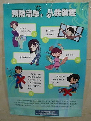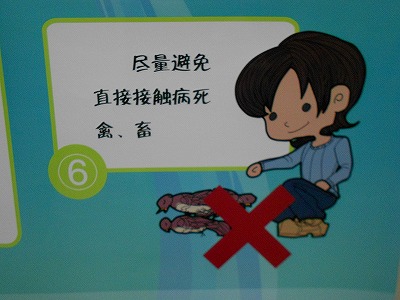 ↑死んだ鳥などに直接触らないようにと書かれているので、普通のインフルエンザの予防ポスターでないことはすぐにわかります。