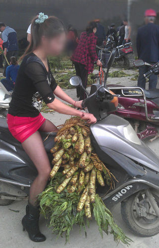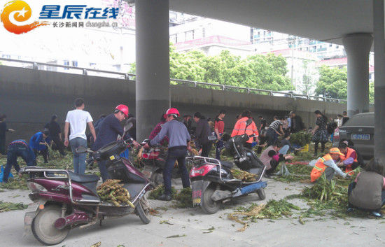 长沙一高架桥下现10吨莴笋 黑丝美女骑摩托抢菜 (中国語)