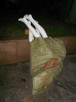 ↑汚い袋に入れられたマネキンの脚部分だけを見つけたら「ぎゃ!」って悲鳴を上げてもしょうがないですよね。