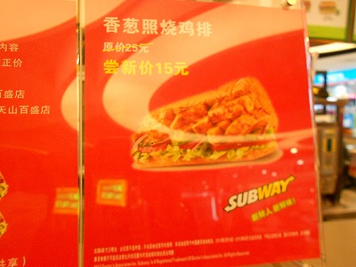 ↑天山路の百盛の中にあるサブウェイ。