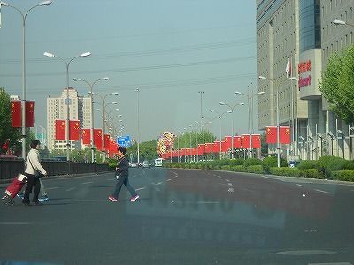 中国の国旗がこれだけ並んでいても、以前の反日デモの時のようなおそろしさはありません。