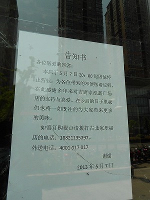 旧パークソンにあった時には、週1のペースでお世話になってました。駅の近くの店まで無くなってしまうとは予想外です。仙霞路の松屋も無くなってしまい、選択肢がすき家しかありません・・・。写真の定食は、南京西路のユニクロに行った帰りにでも食べてみます。