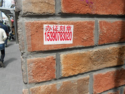 ↑こんなシールが貼られていたり、マジックで書いてあったり、木に焼印のように押されていたりする「办证」「刻章」という文字。