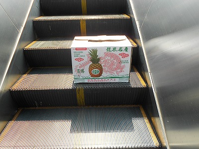 ↑パイナップルが入った箱がどんどこ運ばれていました。