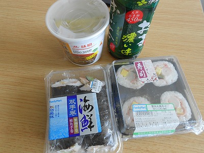 寿司とインスタント味噌汁を飲みます。