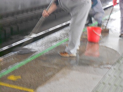 こんな利用者がそこそこ多い時間帯に掃除するなんて緊急事態っぽい。