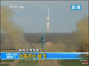 2013年6月11日午後5時38分(日本時間同6時38分)、中国の有人宇宙船「神舟10号」が酒泉衛星発射センターからの打ち上げに成功した。