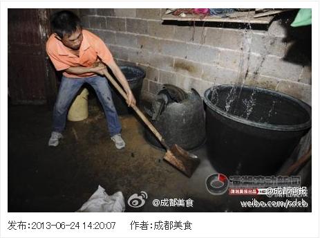 加工工場は2~30平米の民家をそのまま工場に改造しており、室内の真ん中には大きな水瓶が3つ置かれ、別の部屋には桶が至る所に置かれていた。桶には液体が入っており、鼻を刺すような異臭が漂っていた。周辺に住む男性によると、原料の問題か、この工場には暑い日でもハエが近寄らない。