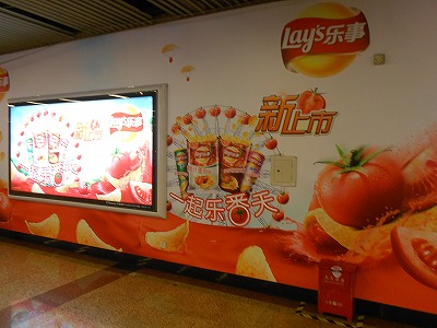 ↑地下鉄の駅構内で広告をバンバン出しています。