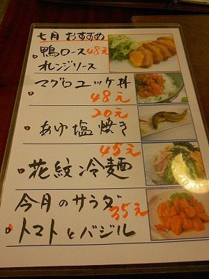 というわけで7月のメニューから。