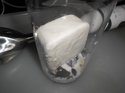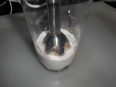 奥様に「使い方に気をつけて!」と何度も釘を刺されながらも貸してくださったミキサーに投入。