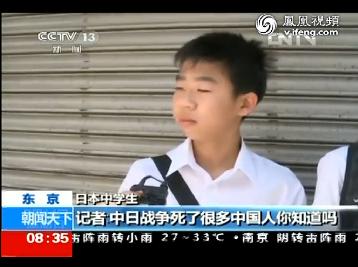 2013年7月14日、中国中央電視台(CCTV)は、日本人中学生に街頭インタビューした映像を流した。