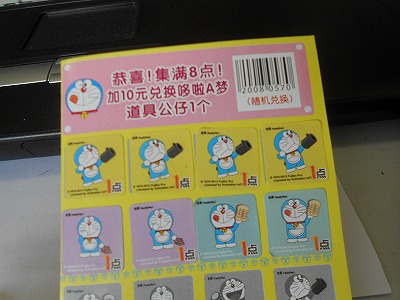 8枚貼った台紙と10元を握り締めて、古北路×天山路のファミリーマートへ!